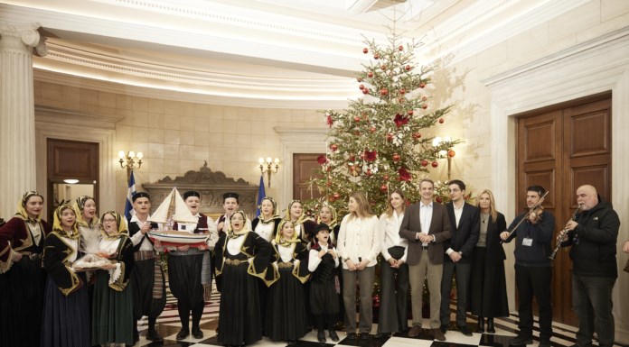 Χριστουγεννιάτικα κάλαντα άκουσαν στο Μέγαρο Μαξίμου ο Πρωθυπουργός Κυριάκος Μητσοτάκης, η σύζυγός του Μαρέβα Γκραμπόφσκι-Μητσοτάκη…