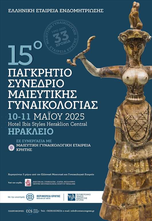 Το 15ο Παγκρήτιο συνέδριο Μαιευτικής- Γυναικολογίας διοργανώνεται από την Ελληνική Εταιρεία Ενδομητρίωσης σε συνεργασία με την Μαιευτική – Γυναικολογική εταιρεία Κρήτης, την στήριξη της Περιφέρειας Κρήτης και την αιγίδα της Μαιευτικής και Γυναικολογικής Εταιρείας Θεσσαλονίκης. Το συνέδριο θα πραγματοποιηθεί στις 10 και 11 Μαΐου 2025 στο Ηράκλειο στο Hotel Ibis Styles Heraklion Central.
