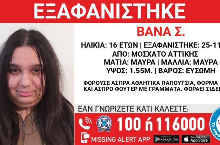 Missing alert για την εξαφάνιση 16χρονης από το Μοσχάτο, εξέδωσε το Χαμόγελο του Παιδιού. Σύμφωνα…