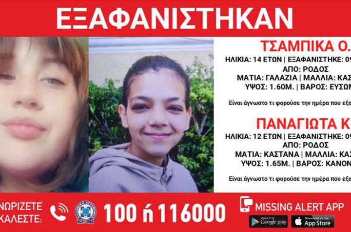 Συναγερμός σήμανε το βράδυ της Δευτέρας στις Αρχές, για την εξαφάνιση δύο κοριτσιών, ηλικίας 14…