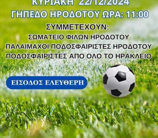 Το «Σωματείο Φίλων Ηροδότου εις μνήμην Αντωνίου Καργιωτάκη», πραγματοποιεί φιλανθρωπικό τουρνουά ποδοσφαίρου για την στήριξη…