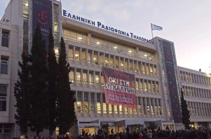 Συνδικάτα και Φοιτητικοί Σύλλογοι στόλισαν με γιγαντοπανό την κεντρική πρόσοψη του ραδιομεγάρου της ΕΡΤ στέλνοντας…