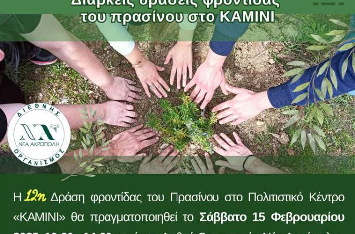 Η 12η δράση φροντίδας του Πρασίνου στο Πολιτιστικό Κέντρο «ΚΑΜΙΝΙ» θα πραγματοποιηθεί το Σάββατο 15…