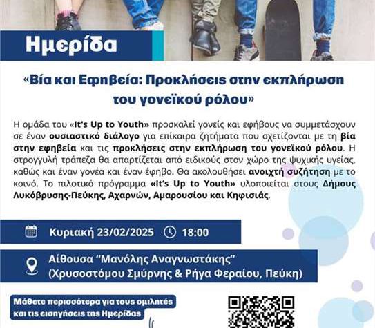 Ημερίδα με τίτλο «Βία και Εφηβεία: Προκλήσεις στην εκπλήρωση του γονεϊκού ρόλου» πραγματοποιείται την Κυριακή…