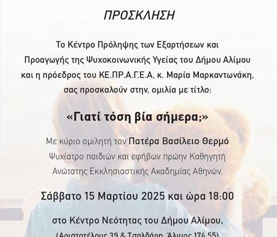 Ο Δήμος Αλίμου και το Κέντρο Πρόληψης των Εξαρτήσεων και Προαγωγής της Ψυχοκοινωνικής Υγείας σας…