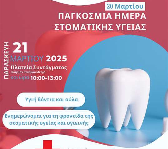 Ο Ελληνικός Ερυθρός Σταυρός (ΕΕΣ), με αφορμή την Παγκόσμια Ημέρα Στοματικής Υγείας, διοργανώνει δράση ενημέρωσης…