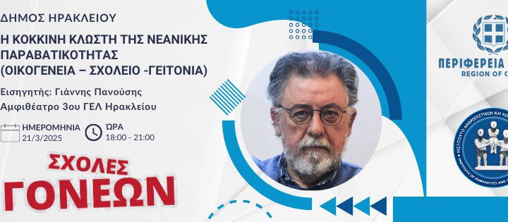 Η Περιφέρεια Κρήτης και το Ινστιτούτο Ανθρωπιστικών και Κοινωνικών Επιστημών (ΙΑΚΕ) σε συνεργασία με τον…