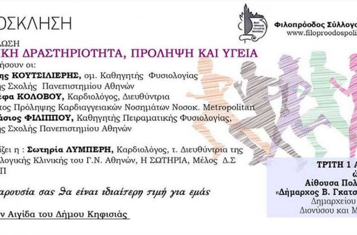 Ο Φιλοπρόοδος Σύλλογος Πολιτείας με την Αιγίδα του Δήμου Κηφισιάς πραγματοποιούν την Τρίτη 1 Απριλίου…
