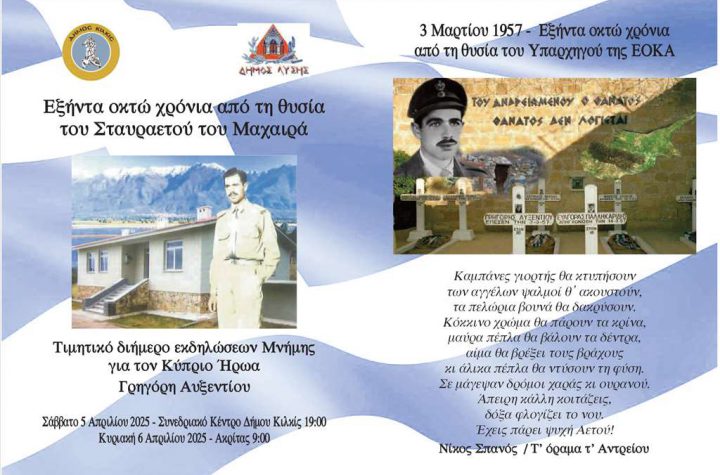 Οι αδελφοποιημένοι Δήμοι Κιλκίς και Λύσης Κύπρου τιμούν τη μνήμη του Κύπριου Ήρωα και υπαρχηγού…