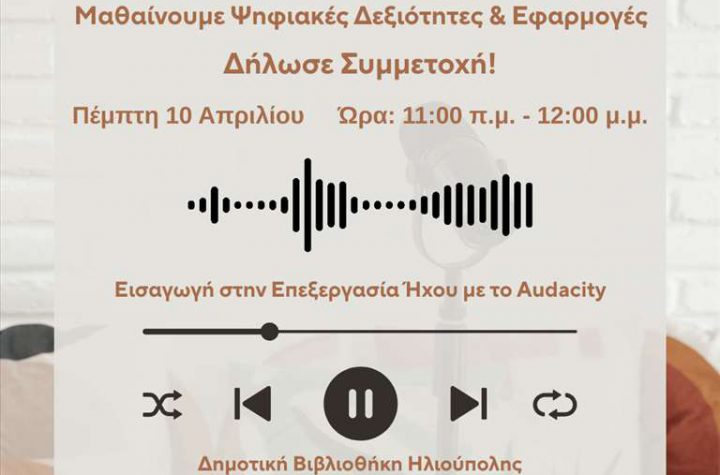 Το Media Lab της Δημοτικής Βιβλιοθήκης Ηλιούπολης σας προσκαλεί να μάθετε χρήσιμες, εφαρμογές και δυνατότητες…
