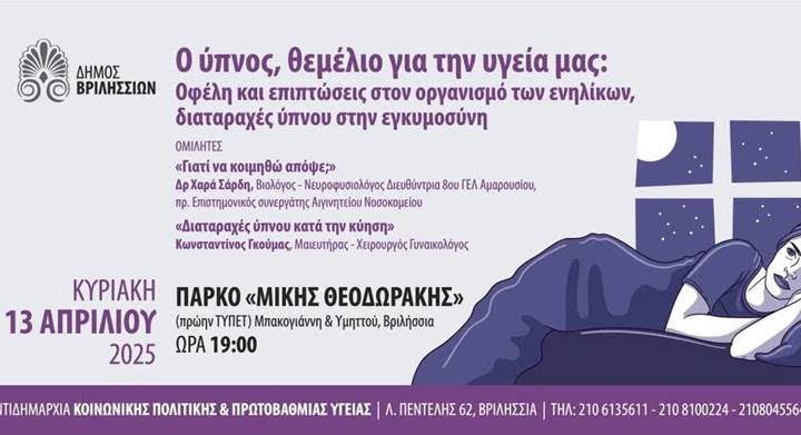 Εκδήλωση για τα οφέλη του ύπνου ως θεμέλιο για την υγεία μας διοργανώνει την Κυριακή…