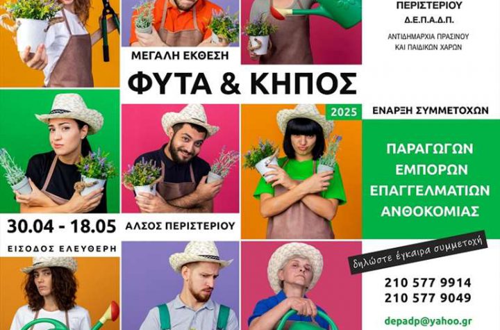Ο Δήμος Περιστερίου διοργανώνει τη μεγάλη ετήσια Έκθεση «Φυτά & Κήπος», στο ομορφότερο Άλσος της…
