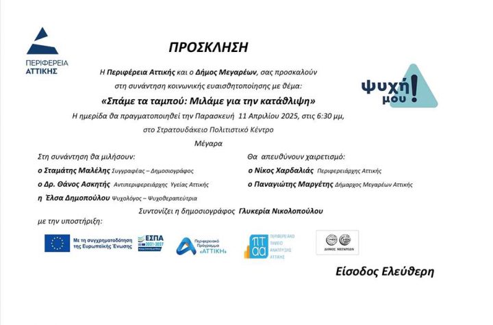 Πρόσκληση: "Σπάμε τα ταμπού: Μιλάμε για την κατάθλιψη" Ι Παρασκευή 11.04.2025 Ι 18:30 μ.μ. Ι…