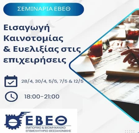 Το Εμπορικό και Βιομηχανικό Επιμελητήριο Θεσσαλονίκης πραγματοποιεί το διαδικτυακό σεμινάριο «Εισαγωγή Καινοτομίας και Ευελιξίας στις…