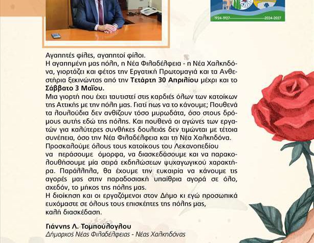 Ο Δήμος Νέας Φιλαδέλφειας – Νέας Χαλκηδόνας προσκαλεί τους κατοίκους του Λεκανοπεδίου στον καθιερωμένο Εορτασμό…