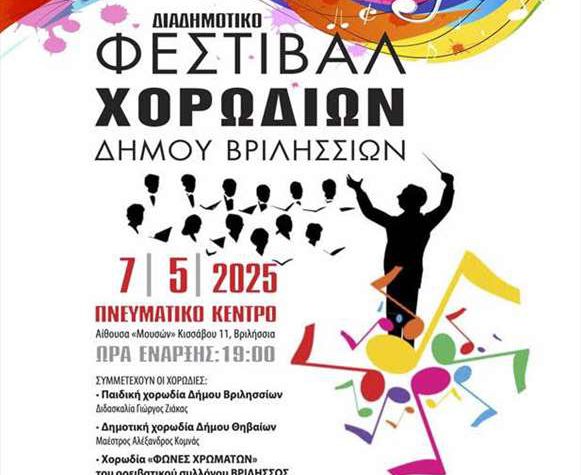 Ο Δήμος Βριλησσίων διοργανώνει Διαδημοτικό Φεστιβάλ Χορωδιών την Τετάρτη 7 Μαΐου 2025 στην αίθουσα «Μουσών»…