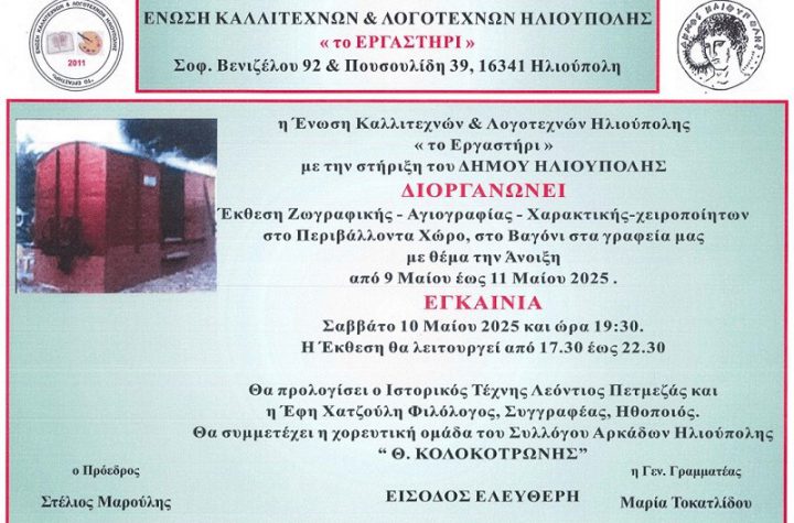 Η Ένωση Καλλιτεχνών & Λογοτεχνών Ηλιούπολης «Το Εργαστήρι» διοργανώνει με την υποστήριξη του Δήμου Ηλιούπολης,…