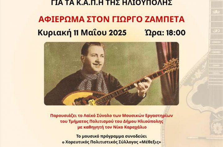 Ο Δήμος Ηλιούπολης έχει την τιμή να σας προσκαλέσει σε ένα αφιέρωμα στον Γιώργο Ζαμπέτα…