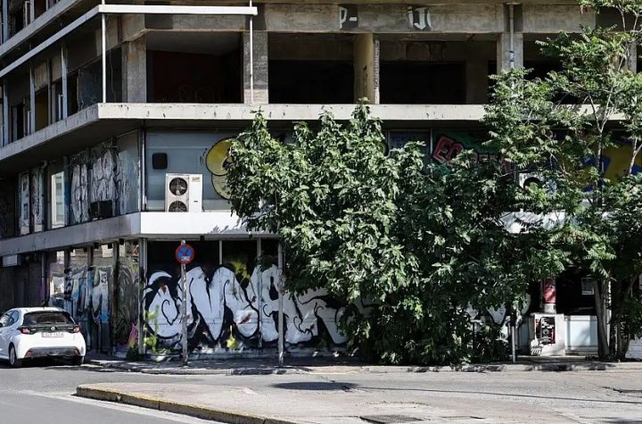 Το εξαώροφο κουφάρι επί της οδού Λαγουμιτζή 6, που στέκει άδειο απέναντι στο Πάντειο μετά…