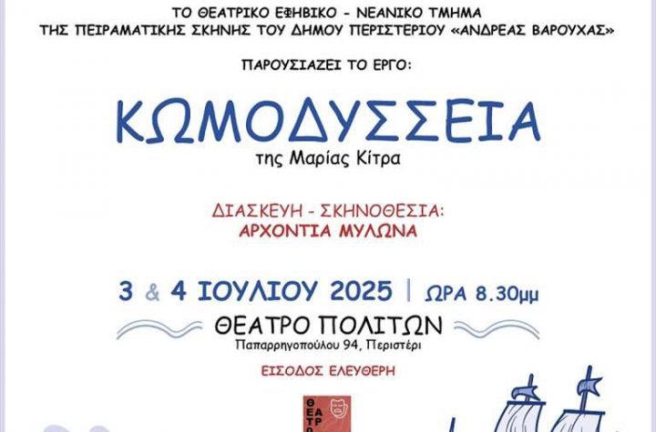 Η Πειραματική Σκηνή του Δήμου Περιστερίου «Ανδρέας Βαρούχας» παρουσιάζει τη θεατρική παράσταση "ΚωμΟδύσσεια" της Μαρίας…