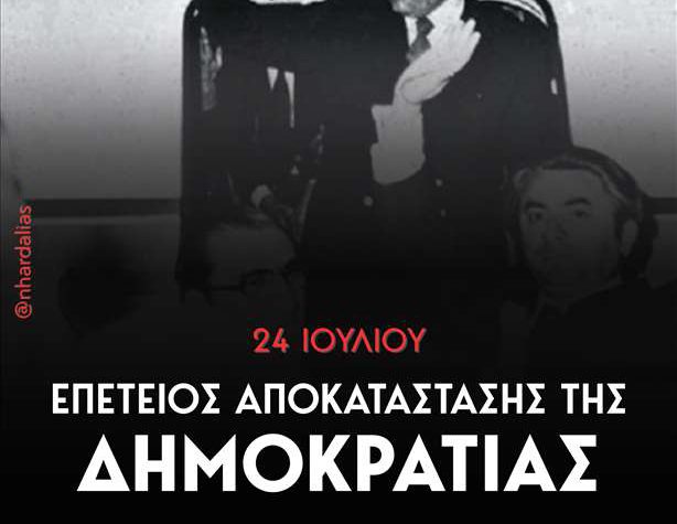 Σαν σήμερα, το 1974, η Ελλάδα ξαναβρήκε τον δρόμο της ελευθερίας και της αποκατάστασης των…