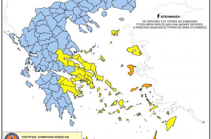 Σύμφωνα με το Χάρτη Πρόβλεψης Κινδύνου Πυρκαγιάς που εκδίδει η Γενική Γραμματεία Πολιτικής Προστασίας του…