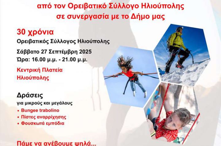 Ο Ορειβατικός Σύλλογος Ηλιούπολης διοργανώνει σε συνεργασία με τον Δήμο λόγω των 30 χρόνων δράσης…