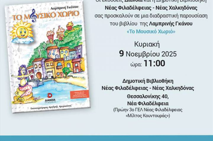 Η Δημοτική Βιβλιοθήκη Νέας Φιλαδέλφειας – Νέας Χαλκηδόνας, σε συνεργασία με τις εκδόσεις Διάνοια, πραγματοποιούν…