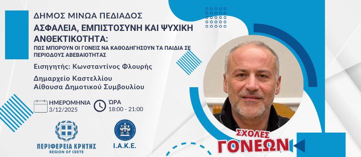 Η Περιφέρεια Κρήτης, το Ινστιτούτο Ανθρωπιστικών και Κοινωνικών Επιστημών (ΙΑΚΕ) σε συνεργασία με τον Δήμο…