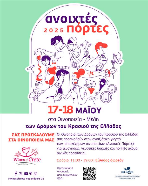 Eπίσημα hashtags #WinesofCrete #OpenDoors25.