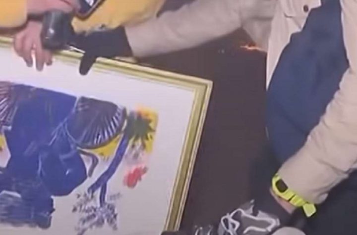 Ένας άνδρας φορτωμένος με τσάντες γεμάτες με αντικείμενα και κρατώντας πίνακες ζωγραφικής έφυγε από το…