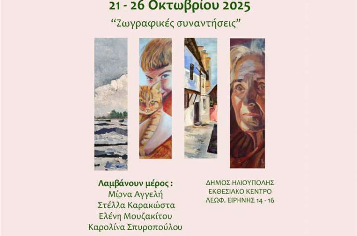 O Δήμος Ηλιούπολης έχει την τιμή να σας προσκαλέσει στην Έκθεση Ζωγραφικής με τίτλο «Ζωγραφικές…