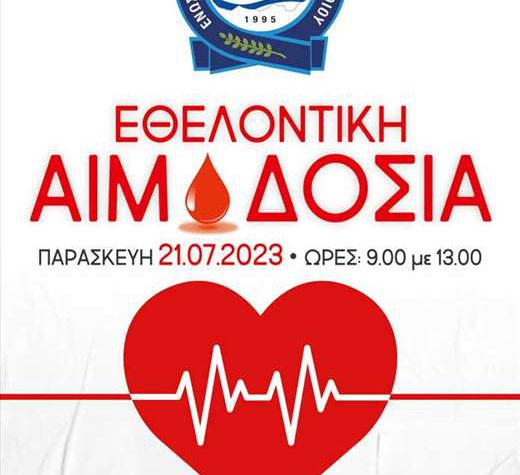 Την Παρασκευή 21 Ιουλίου και ώρες 9.00 με 13.00 θα πραγματοποιηθεί εθελοντική αιμοδοσία της Ένωσης…