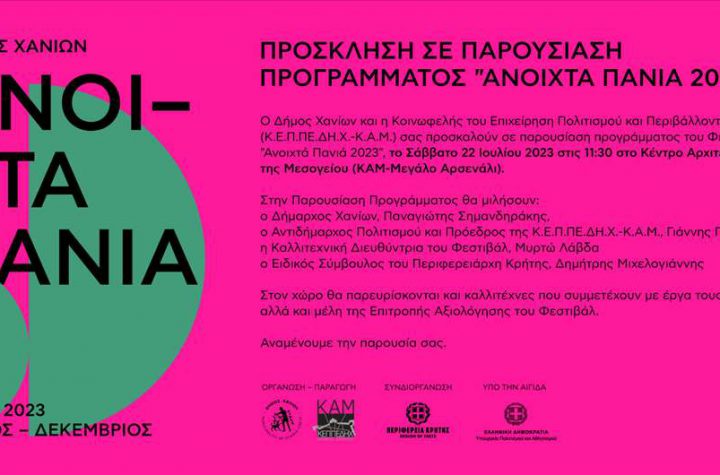 Σάββατο 22/07/2023 στις 11:30 στο ΚΑΜ (Μεγάλο Αρσενάλι) ΠΑΡΟΥΣΙΑΣΗ ΠΡΟΓΡΑΜΜΑΤΟΣ: «ΑΝΟΙΧΤΑ ΠΑΝΙΑ 2023» Ο Δήμος…