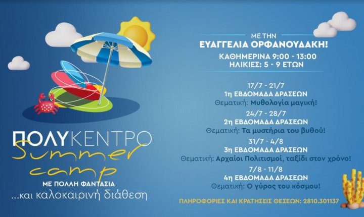 Summer Camp για παιδιά διοργανώνει το Πολύκεντρο Ηρακλείου από την Δευτέρα 17 Ιουλίου μέχρι και…