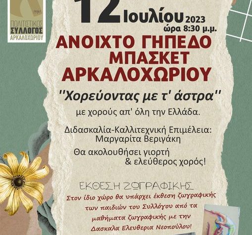 Ο Πολιτιστικός Σύλλογος Αρκαλοχωρίου σας προσκαλεί στην εκδήλωση: » Χορεύοντας με τ’ άστρα», την Τετάρτη…