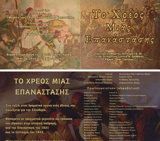 Το 2ο & 3ο Δημοτικό Σχολείο Νέας Ερυθραίας, στο πλαίσιο των επετειακών εκδηλώσεων για τον…