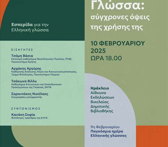 Εσπερίδα- αφιέρωμα στην Ελληνική γλώσσα με τίτλο « Ελληνική γλώσσα: σύγχρονες όψεις χρήσης της» διοργανώνεται…