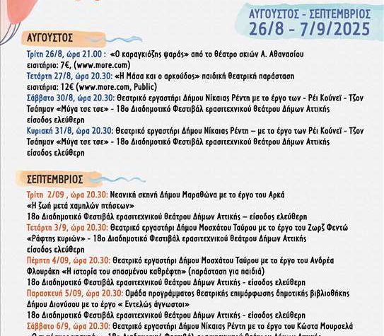 Ο Δήμος Νίκαιας – Αγίου Ιωάννη Ρέντη συνεχίζει να γεμίζει τις βραδιές μας με πολιτισμό….