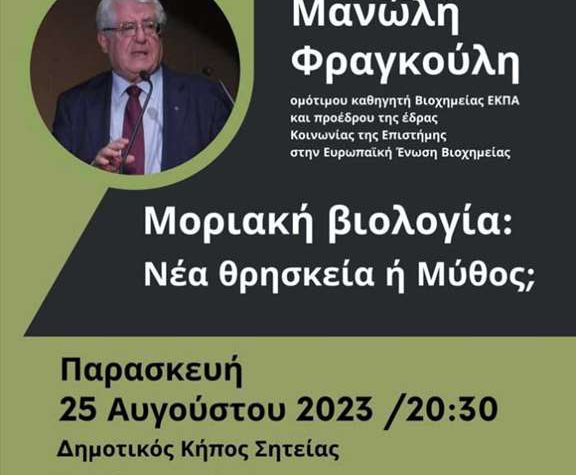 Ομιλία του Μανώλη Φραγκούλη την Παρασκευή 25 Αυγούστου 2023 στον Δημοτικό Κήπο Σητείας με θέμα…