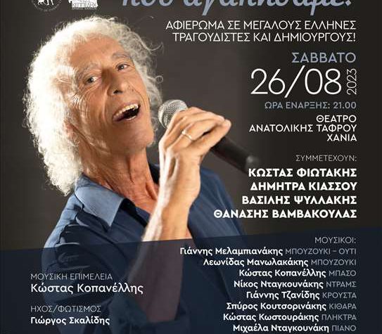 Συναυλία: «Τραγούδια που αγαπήσαμε!» το Σάββατο 26 Αυγούστου 2023, ώρα 21.00, στο Θέατρο της Ανατολικής…