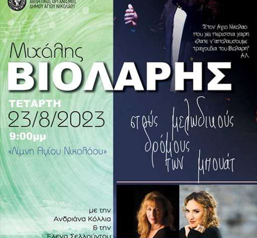 Την Τετάρτη 23 Αυγούστου, στις 21.00, στη Λίμνη Αγίου Νικολάου διοργανώνεται συναυλία με τον Μιχάλη…