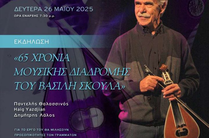 Εκδήλωση – αφιέρωμα στον κορυφαίο ερμηνευτή και λυράρη, Βασίλη Σκουλά, πραγματοποιείται τη Δευτέρα 26 Μαΐου,…