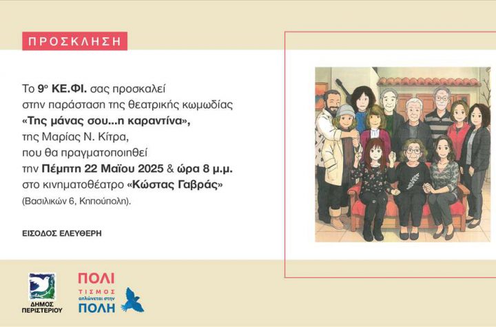 Μια ξεκαρδιστική θεατρική κωμωδία παρουσιάζει το 9ο Κέντρο Φιλίας (ΚΕ.ΦΙ.) του Δήμου Περιστερίου, την Πέμπτη…