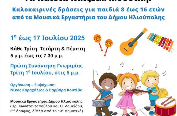 Τα Μουσικά Εργαστήρια του Δήμου Ηλιούπολης προσκαλούν τα παιδιά, ηλικίας 8 έως 16 ετών, που…