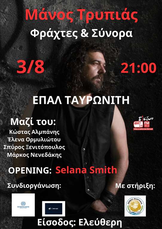 καλοκαιρινή συναυλία με τον Μάνο Τρυπιά και το συγκρότημά του, την Πέμπτη 3