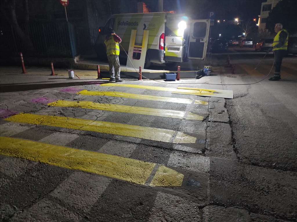 Οι εργασίες πραγματοποιήθηκαν κατά τις βραδινές ώρες, ώστε να μην επηρεαστεί η κυκλοφορία των αυτοκινήτων, ενώ όχημα της Πολιτικής Προστασία του Δήμου, φρόντιζε για την ασφάλεια του συνεργείου.