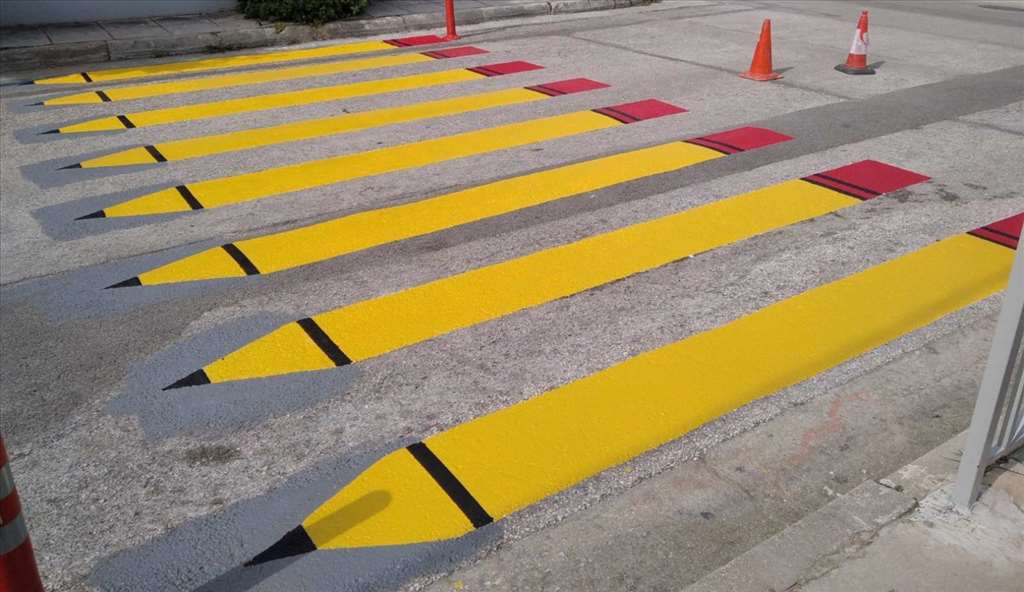 Ταυτόχρονα, τα έντονα χρώματα (κίτρινο και κόκκινο) αποτελούν πρώτης τάξεως επισήμανση για τους οδηγούς, υπενθυμίζοντάς τους όχι μόνο ότι ο πεζός πάντοτε προηγείται, αλλά και ότι οδηγούν κοντά σε σχολείο.