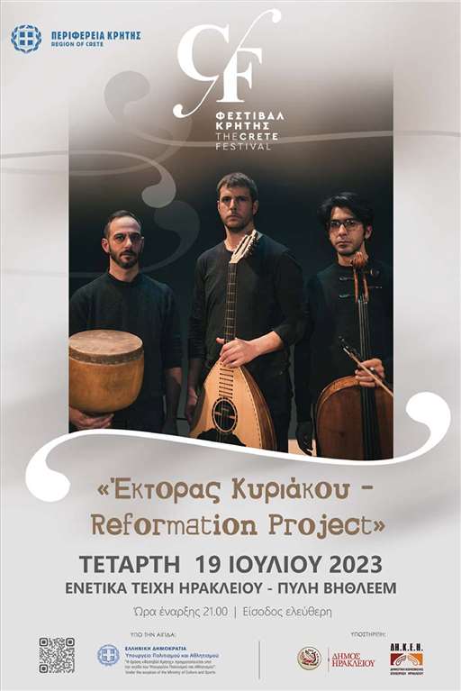 Στο πλαίσιο του «Φεστιβάλ Κρήτης», που διοργανώνει η Περιφέρεια Κρήτης, για τρίτη χρονιά φέτος, υπό την αιγίδα του Υπουργείου Πολιτισμού, θα παρουσιαστεί το «Reformation Project» από τον Έκτορα Κυριάκου και τους εξαιρετικούς συνεργάτες του. Η συναυλία θα πραγματοποιηθεί την Τετάρτη 19 Ιουλίου στις 9 το βράδυ στο κηποθέατρο «Μάνος Χατζιδάκις» με ελεύθερη είσοδο για τους πολίτες.
