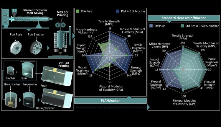 Οι συμμετέχοντες στο πρόγραμμα του Πανεπιστημίου ουσιαστικά ανάμειξαν τον άνθρακα που προκύπτει από την θερμική επεξεργασία των κλαδεμάτων ελιάς με άλλα πολυμερή υλικά που χρησιμοποιούνται στην τρισδιάστατη εκτύπωση και δημιούργησαν ένα καινοτόμο σύνθετο υλικό, βιοεξανθράκωμα (biochar,) για πρώτη φορά διεθνώς προερχόμενο από βιομάζα ελιάς. Οι χαρακτηριστικές ιδιότητες του νέου μείγματος είναι ότι με την χρήση του επιτυγχάνεται η ενίσχυση της θερμομηχανικής αντοχής και η σταθερότητα των δημοφιλών πολυμερών τρισδιάστατης εκτύπωσης.